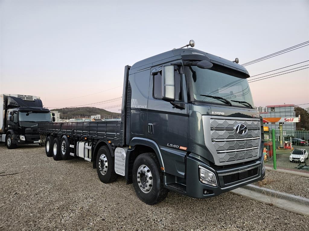 카고(5.5이상) 20.5톤이상 엑시언트 25톤 [엑시언트(XCIENT)] 25톤 정축 카고 본넷엑시언트프로로 튜닝 실주행 무사고 1인신조 가벼운 구조물 짐(5톤 전후)위주로 실어서 적재함 바닥, 차량상태 매우 좋습니다